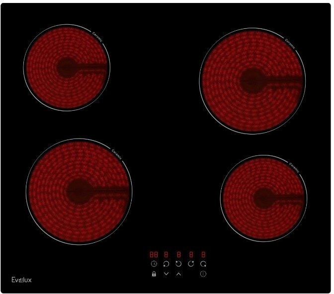 защитное отключение конфорок, индикатор остаточного тепла, кнопка блокировки панели, Автоотключение, Защита от перегрузки (автоматический предохранитель)