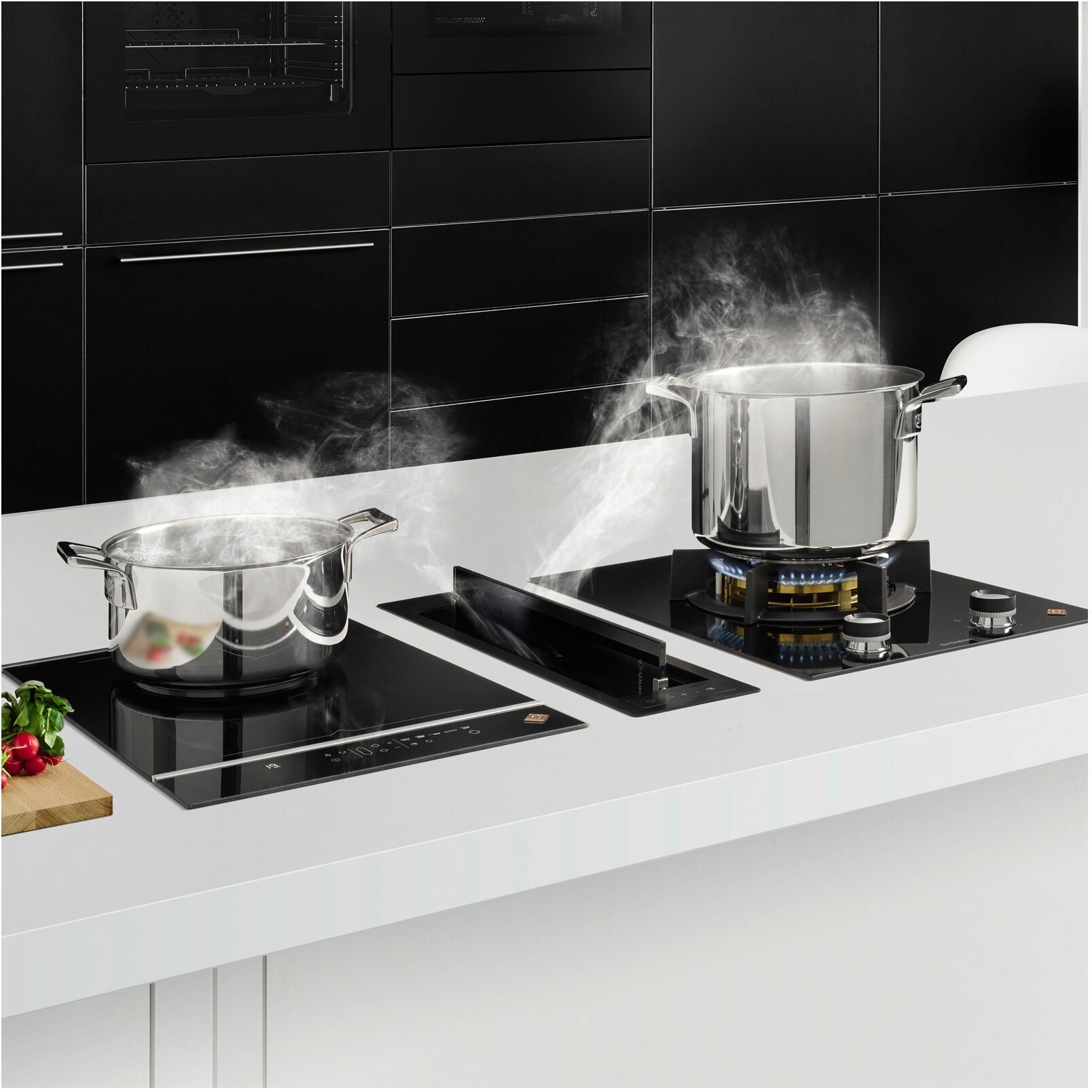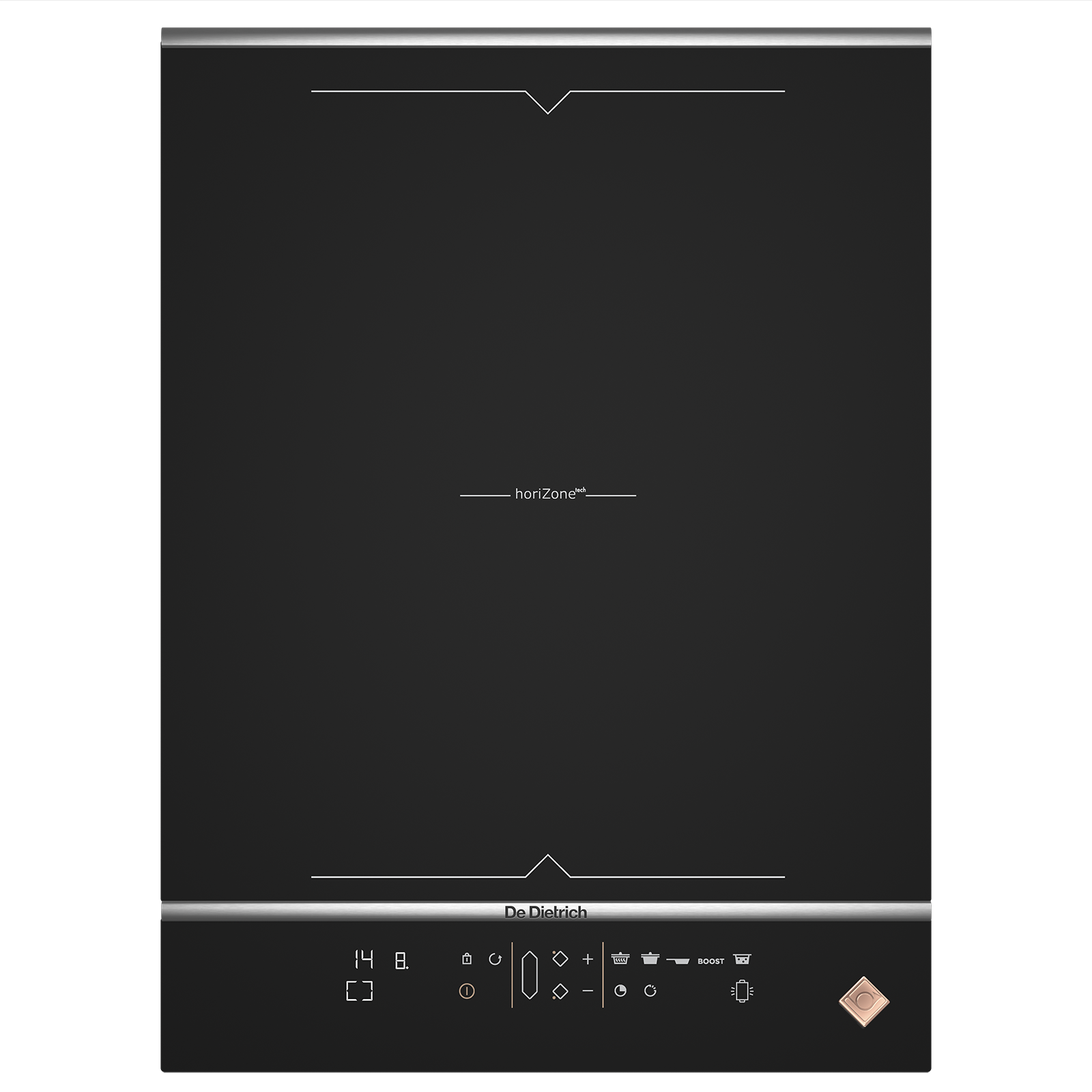 1 зона horiZone, которая может использоваться в качестве 2 независимых конфорок 4 элемента управления прямого доступа, включая Boost 10 функций безопасности 5 функций: «Кипение», «Истекшее время», «Запоминание», «Piano» и «Гриль / Планча»