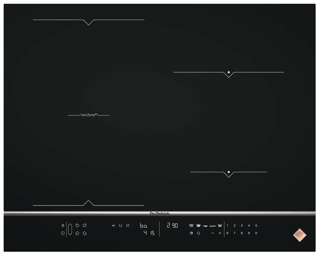 1 зона horiZone (может использоваться в качестве 2 независимых конфорок), 4 сенсора программируемого прямого доступа для каждой зоны, 4 независимых таймера с настройками от 1 до 99 минут, 10 функций безопасности, Функции: Boil, Elapsed Time, Recall, Clean Lock, Switch, ICS, Ограничитель температуры, 2 вида установки: стандартный монтаж и встраивание заподлицо