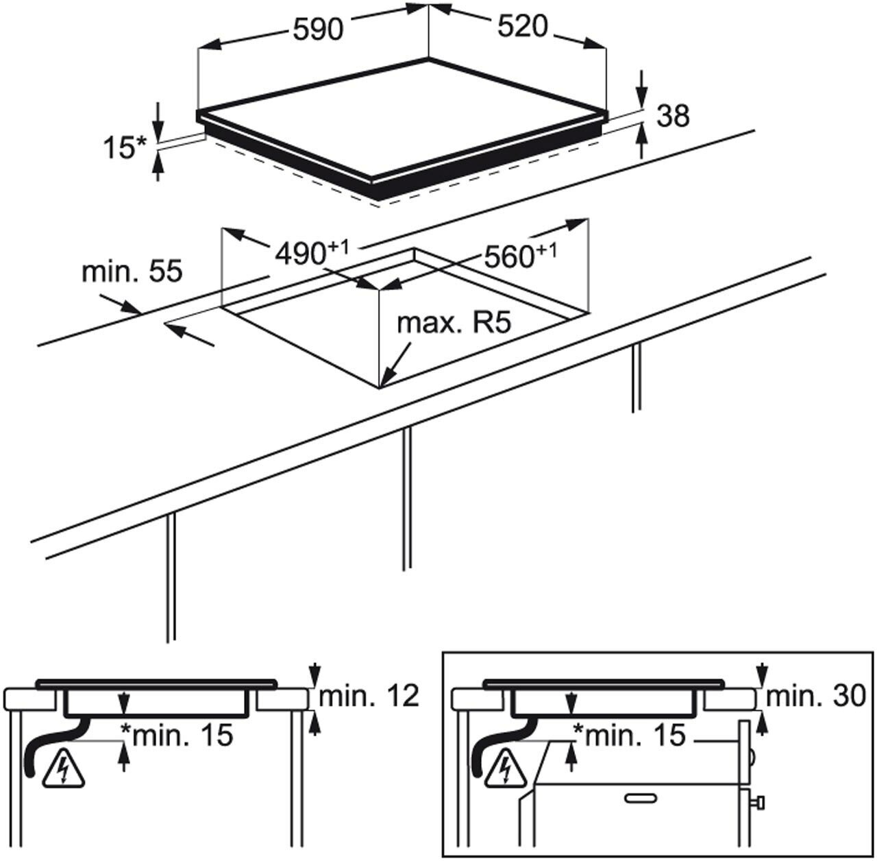 левая передняя конфорка 12-17.5-21 см; левая задняя конфорка 14.5 см; правая передняя конфорка 14.5 см; правая задняя конфорка 17x26.5 см