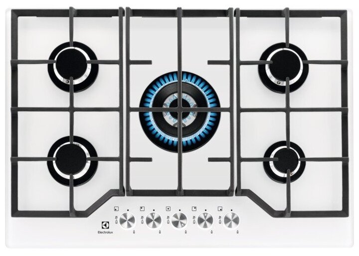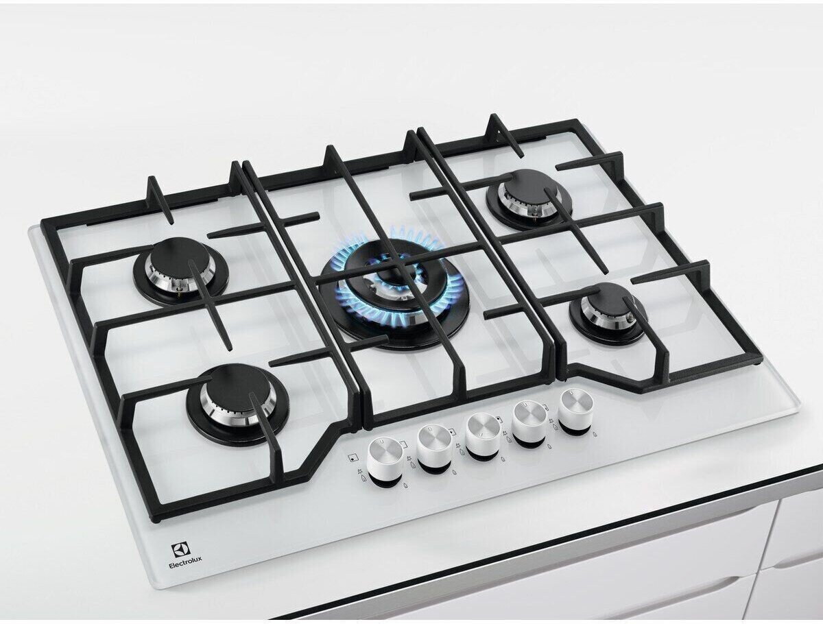 Газовая варочная поверхность Electrolux GPE373YV-Его отличает элегантная панель из закаленного стекла белого цвета, что делает его привлекательным для интерьера кухни и в то же время обеспечивает практичное использование. Данная модель оснащена 5 конфорками с прочными чугунными опорами и системой газового контроля, благодаря чему можно смело готовить различные блюда.