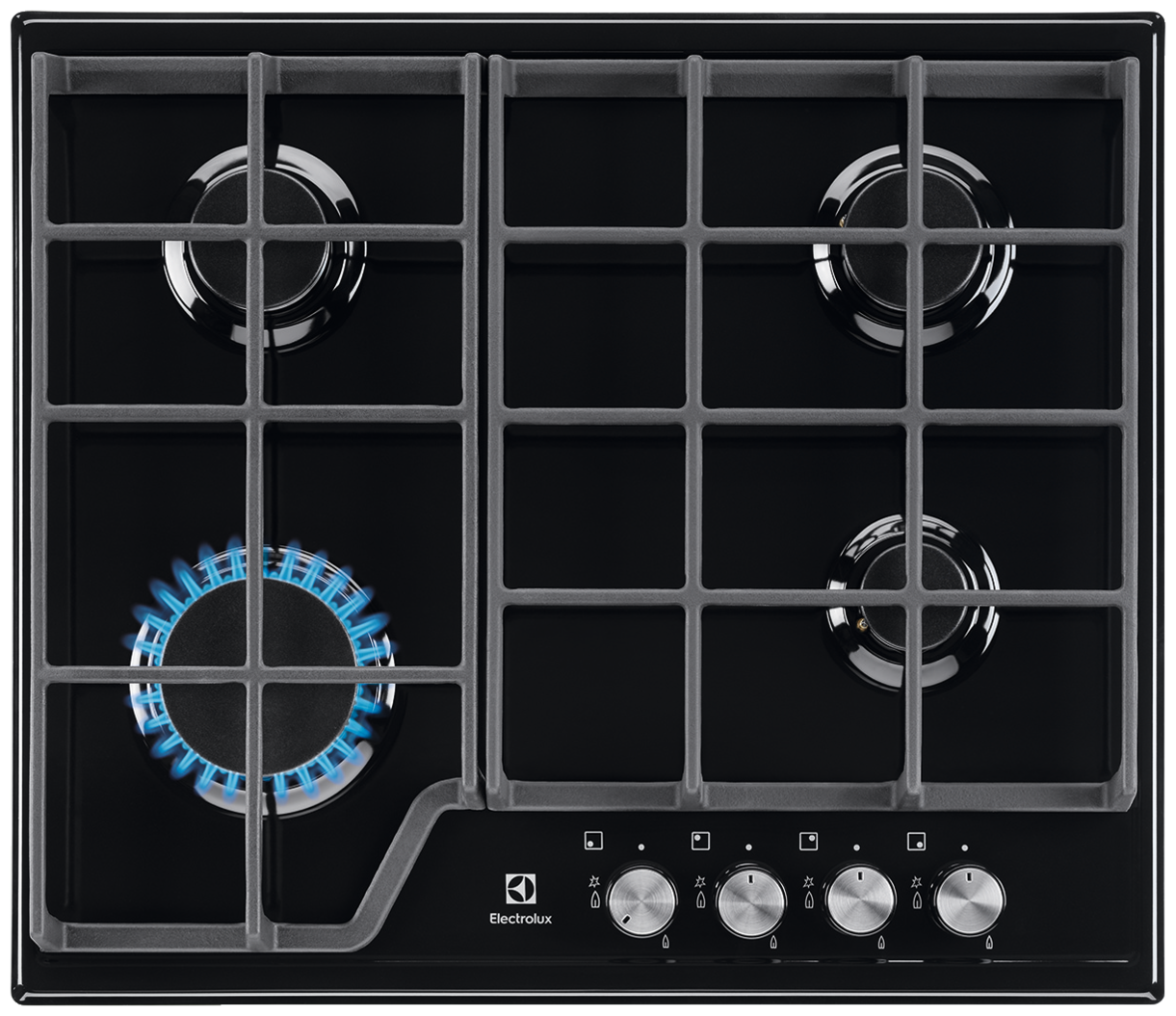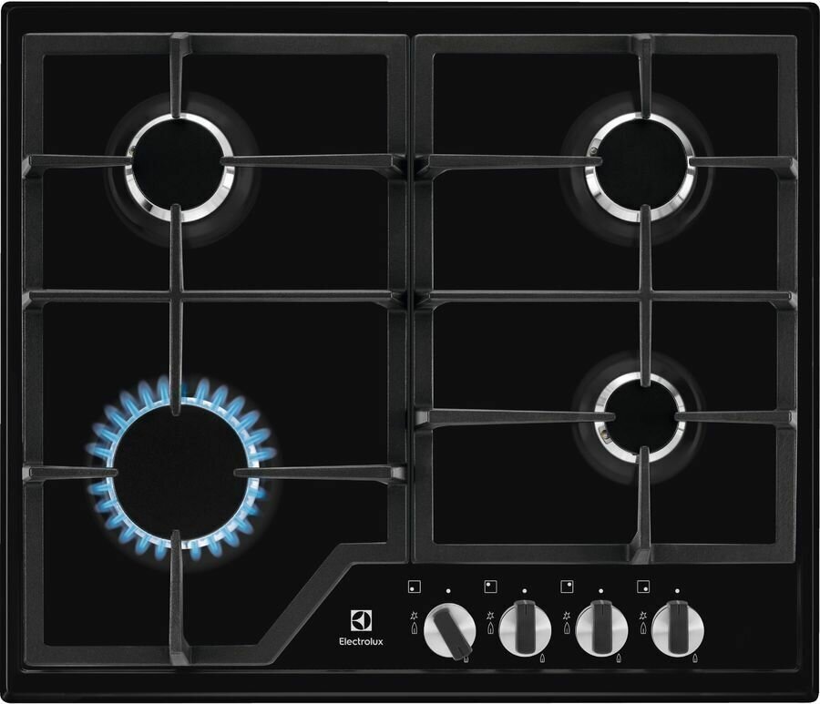 Газовая варочная поверхность Electrolux GRE263MB- Он состоит из 4-х конфорок мощностью 1,2 и 3 кВт, установленных на стальной эмалированной столешнице. Все горелки оснащены опцией газового контроля. Это означает, что при тушении пожара тягой автоматически прекращается подача топлива.