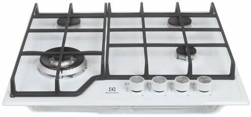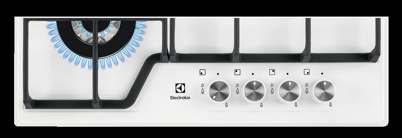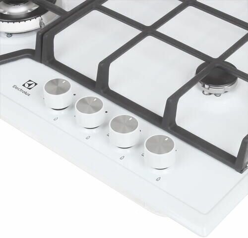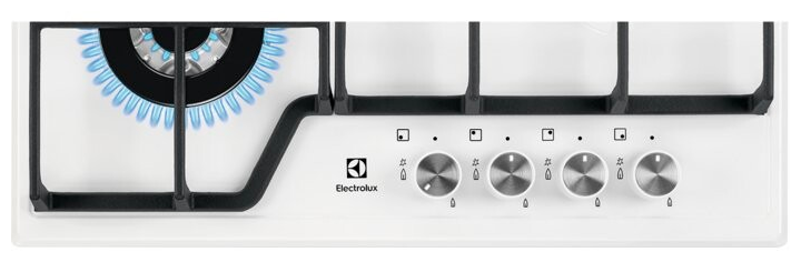 Газовая варочная поверхность Electrolux GRE363MW- белого цвета представлена 4 конфорками разных размеров, одна из которых снабжена расширением типа «Двойная корона». Мощность горелок также различается и составляет 1, 2, 4 кВт. Чугунные решетки выдерживают посуду любого веса.