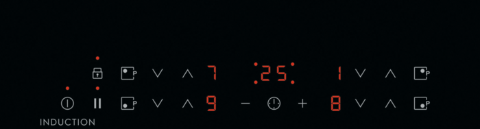 защитное отключение конфорок, индикатор остаточного тепла, кнопка блокировки панели, Автоотключение, Блокировка кнопки включения