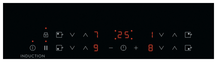 защитное отключение конфорок, индикатор остаточного тепла, кнопка блокировки панели, Автоотключение, Блокировка кнопки включения