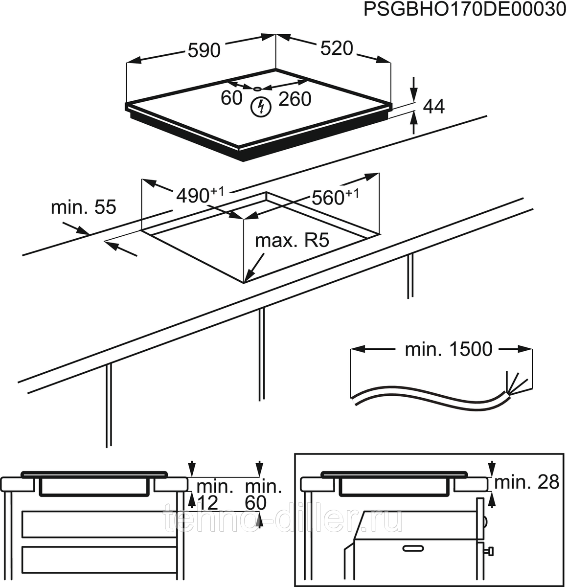 левая передняя конфорка 21 см; левая задняя конфорка 18 см; правая передняя конфорка 14.5 см; правая задняя конфорка 18 см