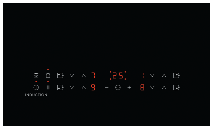 защитное отключение конфорок, индикатор остаточного тепла, кнопка блокировки панели