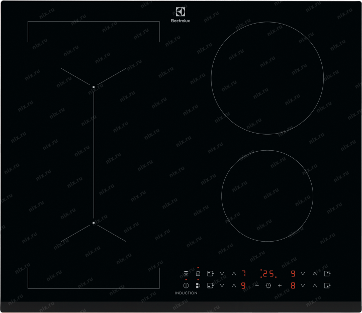 распознавание наличия посуды, таймер, функция Booster, Быстрый нагрев, Индукционный мост