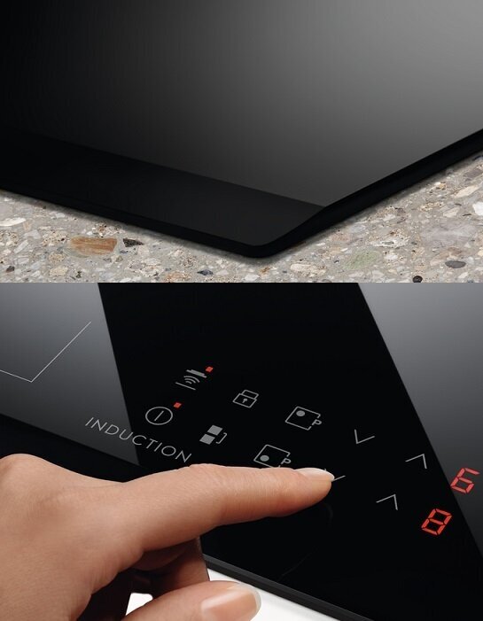 защитное отключение конфорок, индикатор остаточного тепла, кнопка блокировки панели