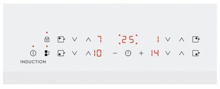 защитное отключение конфорок, индикатор остаточного тепла, кнопка блокировки панели