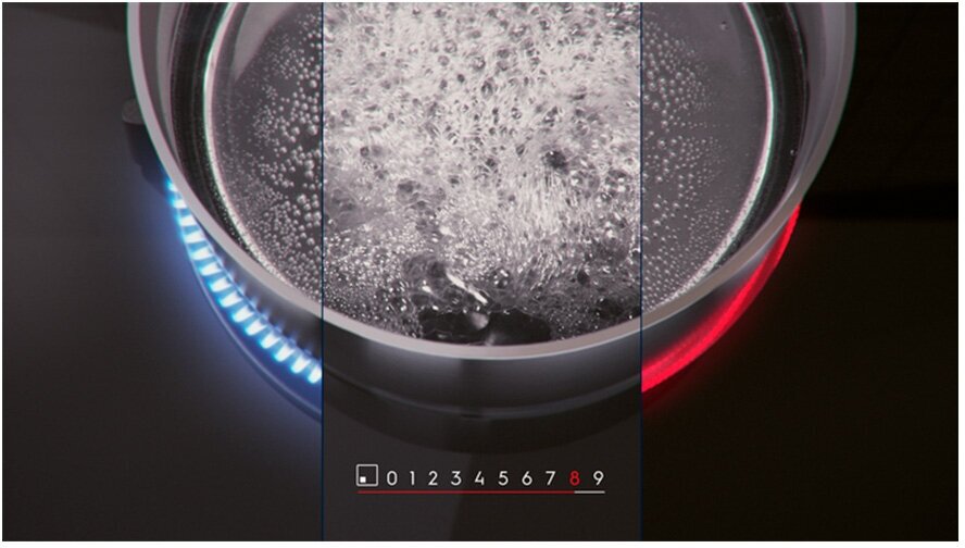 Оборудование укомплектовано чувствительным сенсорным управлением, а также системой безопасности детей. Гарантией безопасности является наличие блокировки рабочей поверхности и функции защитной остановки. Три доступные варочные зоны работают в экспресс-режиме.