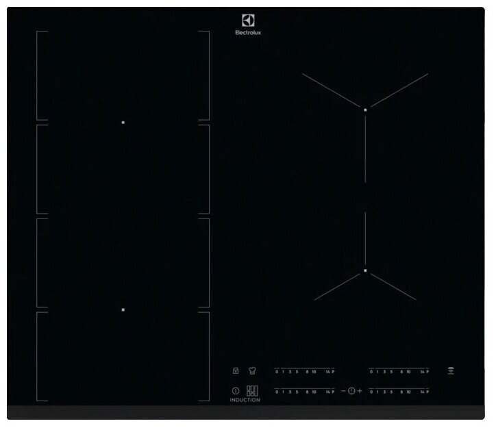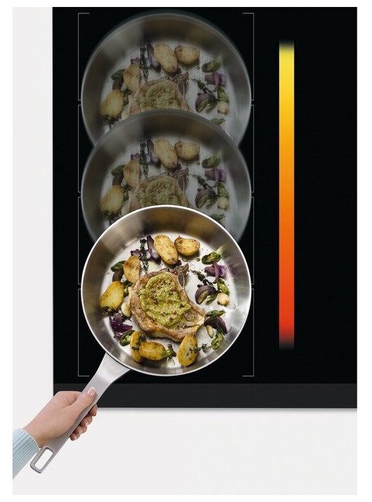 функция FlexiBridge этой варочной панели объединяет до 4 конфорок, превращая их в 1 конфорку увеличенного размера
