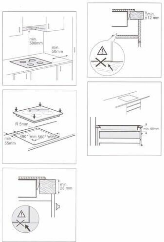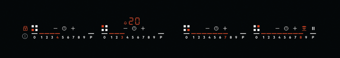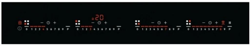 защитное отключение конфорок, индикатор остаточного тепла, кнопка блокировки панели