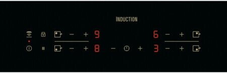 защитное отключение конфорок, индикатор остаточного тепла, кнопка блокировки панели