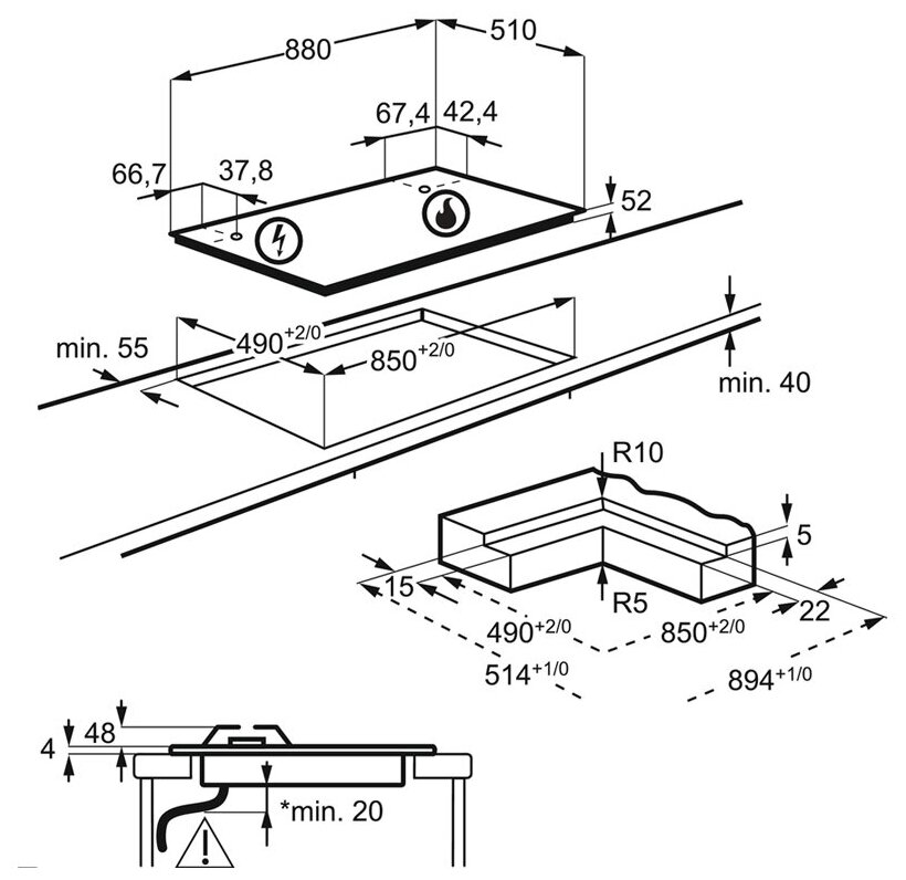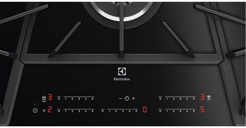 защитное отключение конфорок, индикатор остаточного тепла, кнопка блокировки панели
