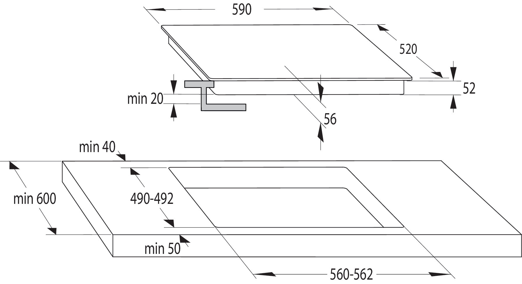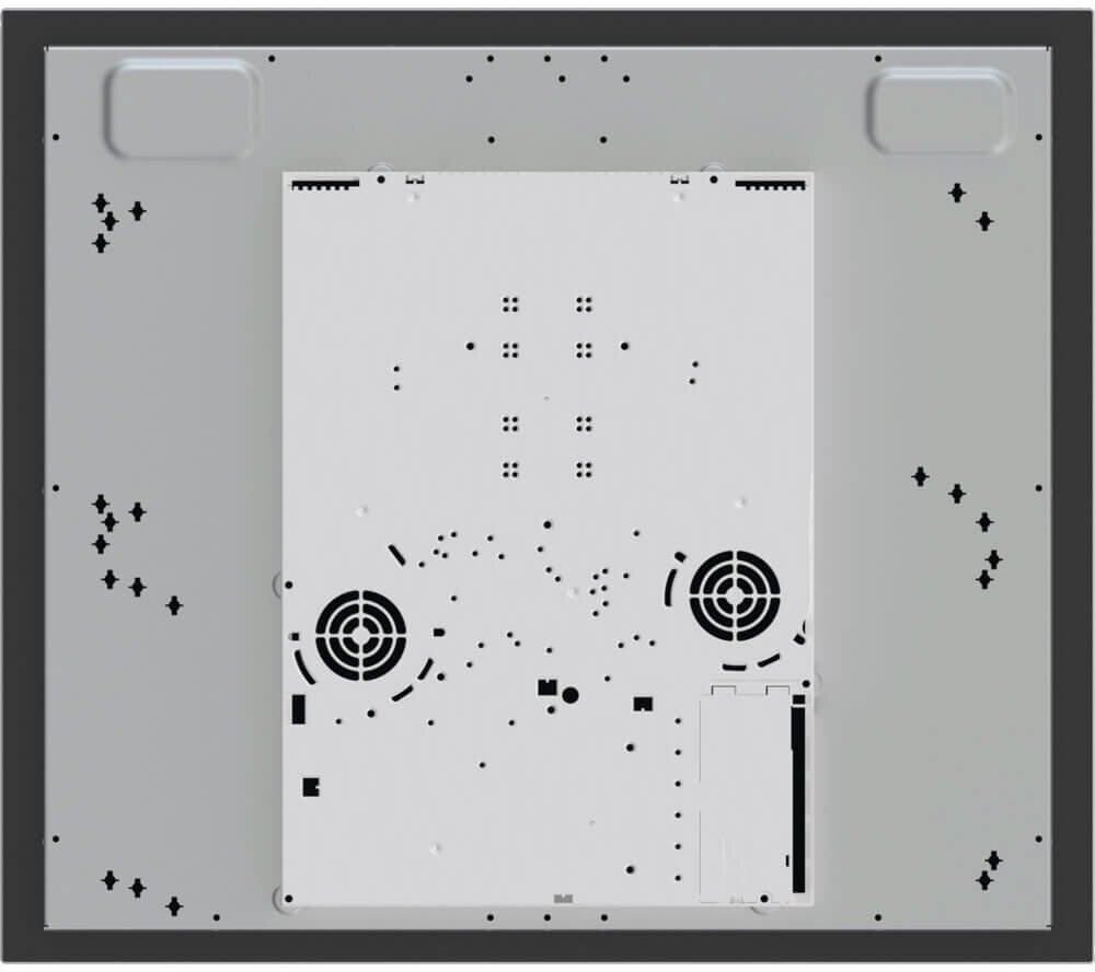 размер левой задней конфорки 19x21 см, размер левой передней конфорки 19x21 см, размер правой задней конфорки 21 см, размер правой передней конфорки 16 см