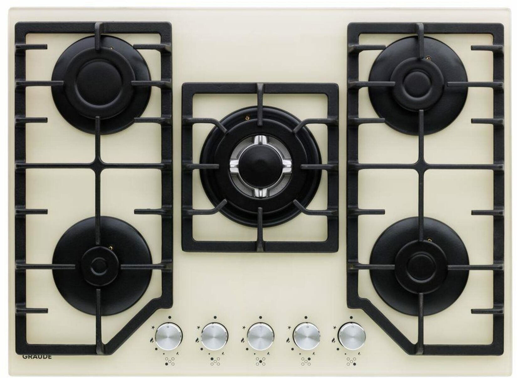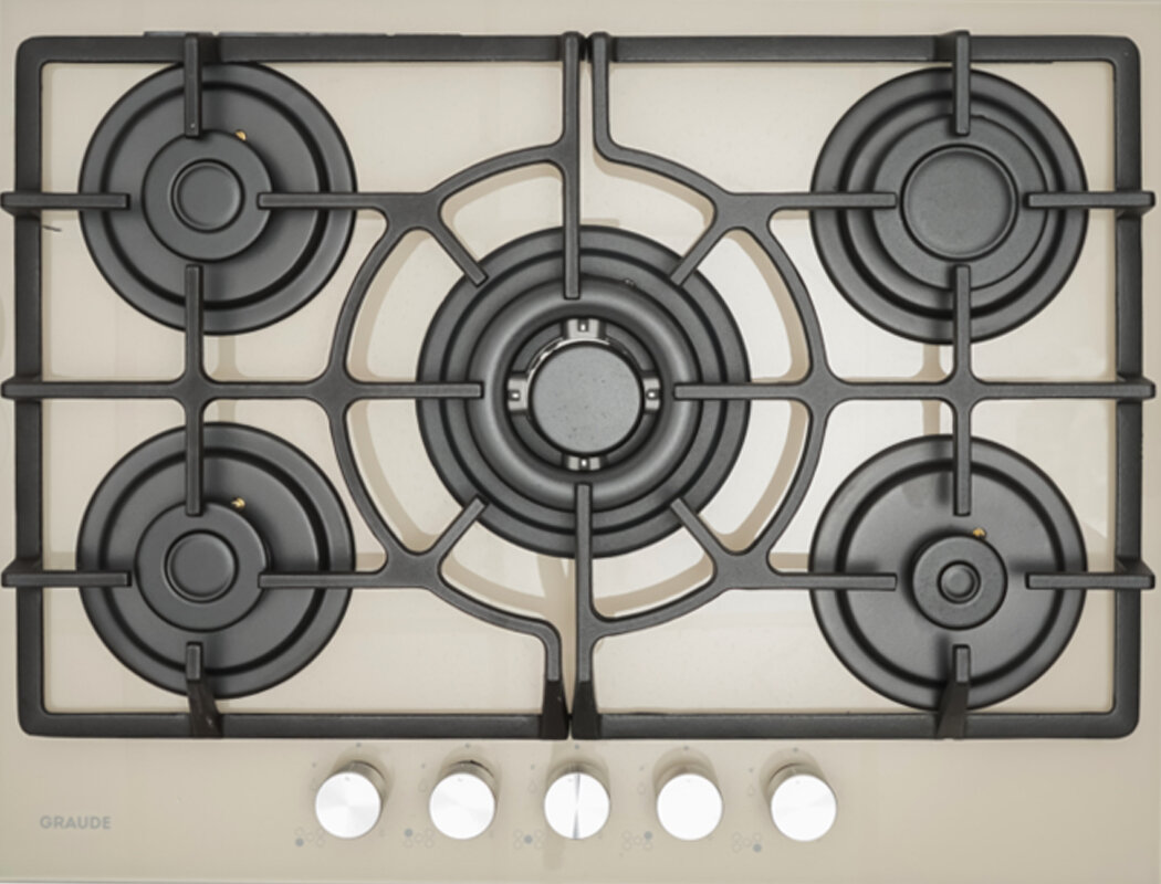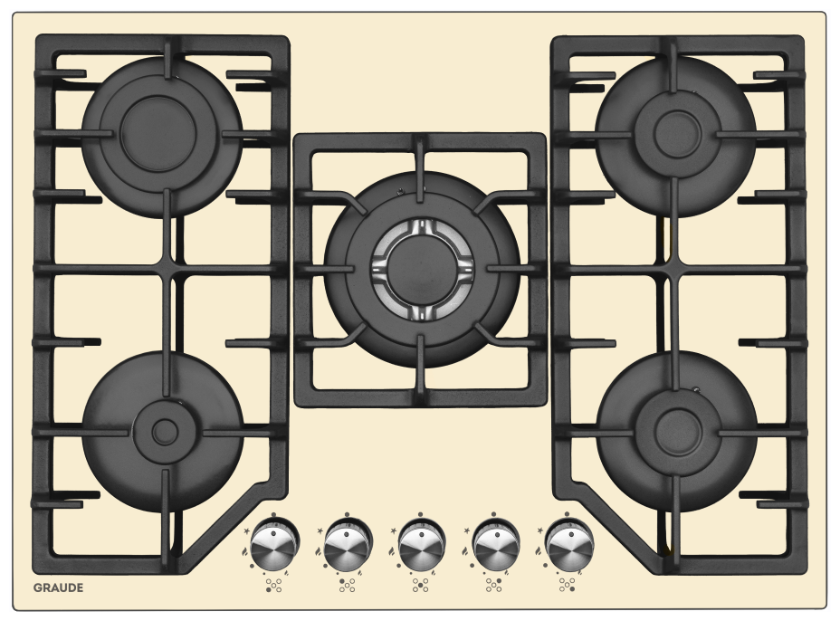 Газовая варочная панель Graude GS 70.1 C имеет 5 конфорок разной мощности, включая мощную конфорку WOK. Поверхность сделана из закаленного стекла, за которым легко ухаживать и очищать от остатков пищи и других загрязнений. Варочная панель оснащена тройной чугунной решеткой.