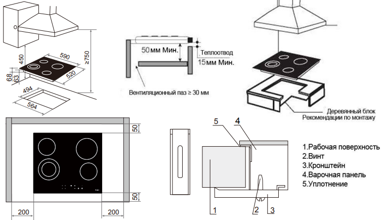 Автоматическое выключение, Блокировка управления от детей, Hi-light, Индикатор остаточного тепла, Управление Touch Control