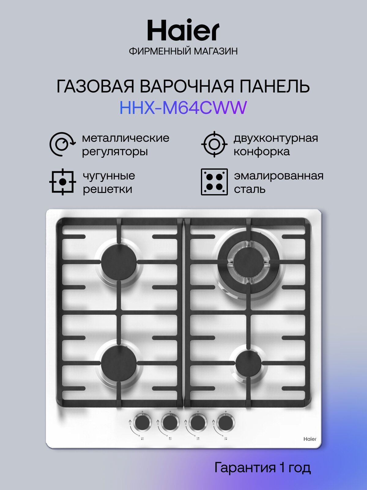 Газовая варочная панель Haier HHX-M64CWW