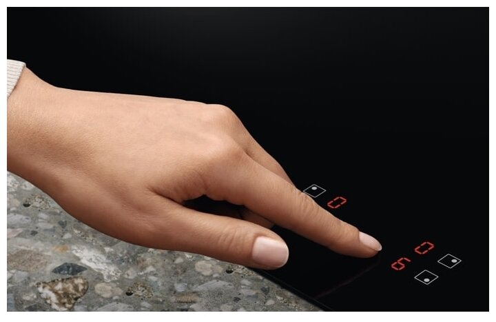 защитное отключение конфорок, индикатор остаточного тепла, кнопка блокировки панели