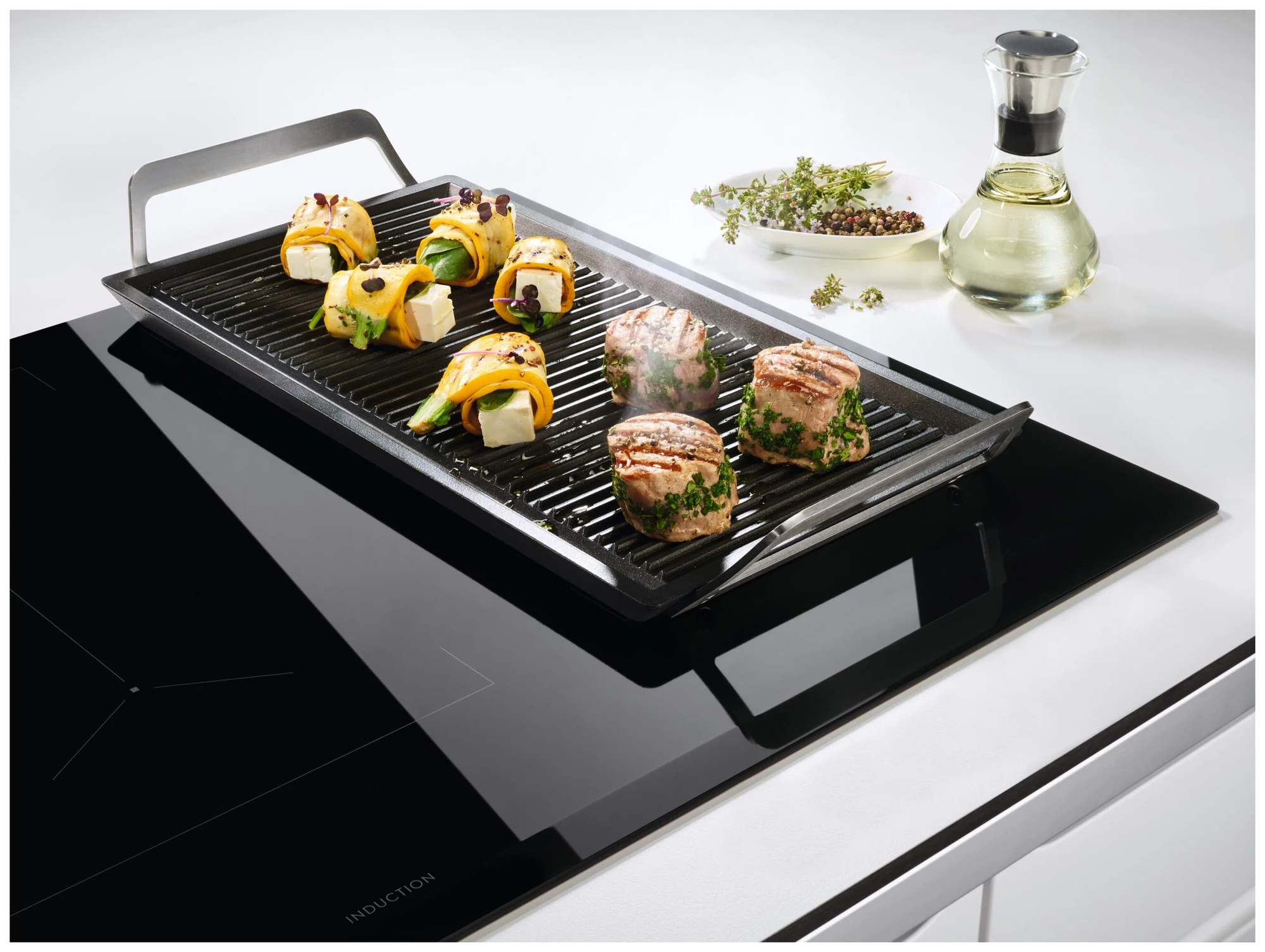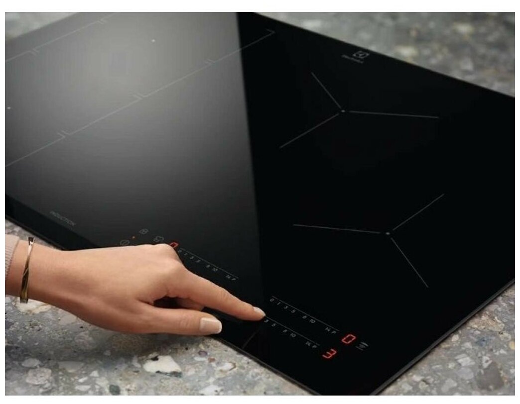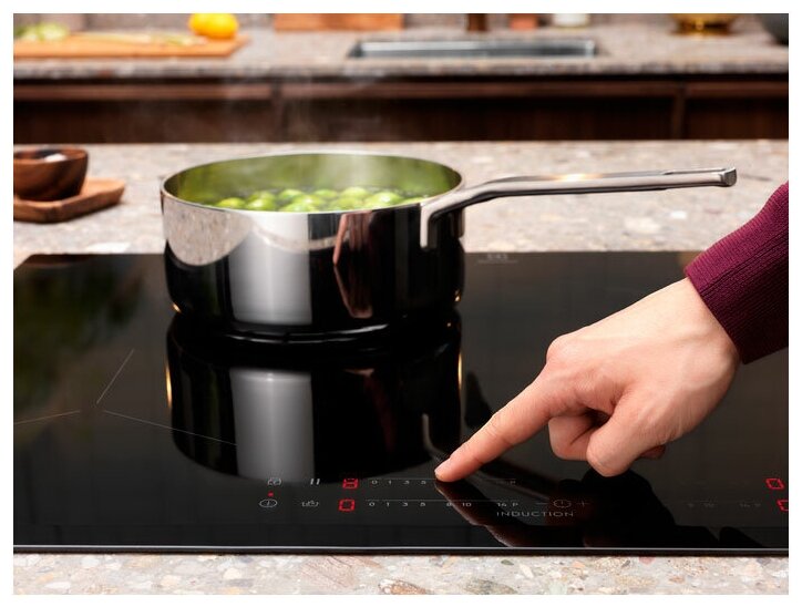 автоматика закипания, наличие вытяжки, распознавание наличия посуды, распознавание размера посуды, таймер, функция Booster, функция Bridge