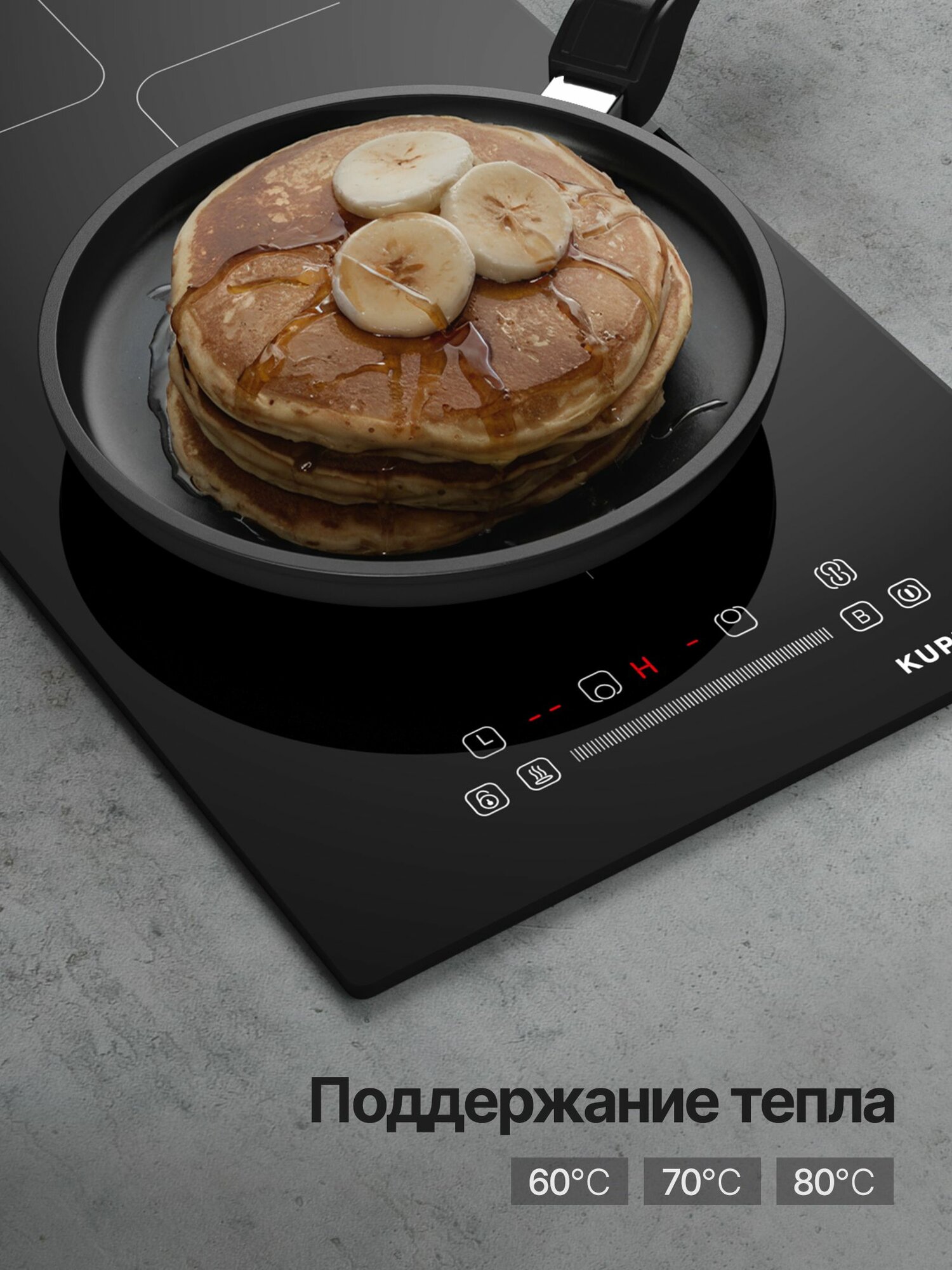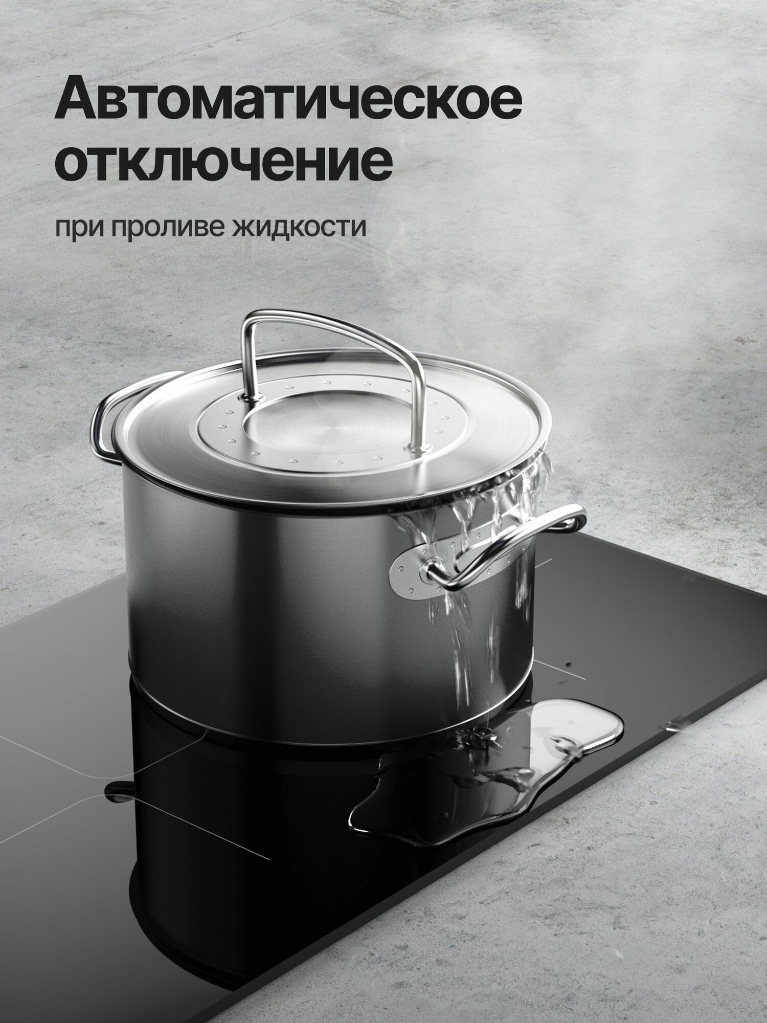 защитное отключение конфорок, индикатор остаточного тепла, кнопка блокировки панели