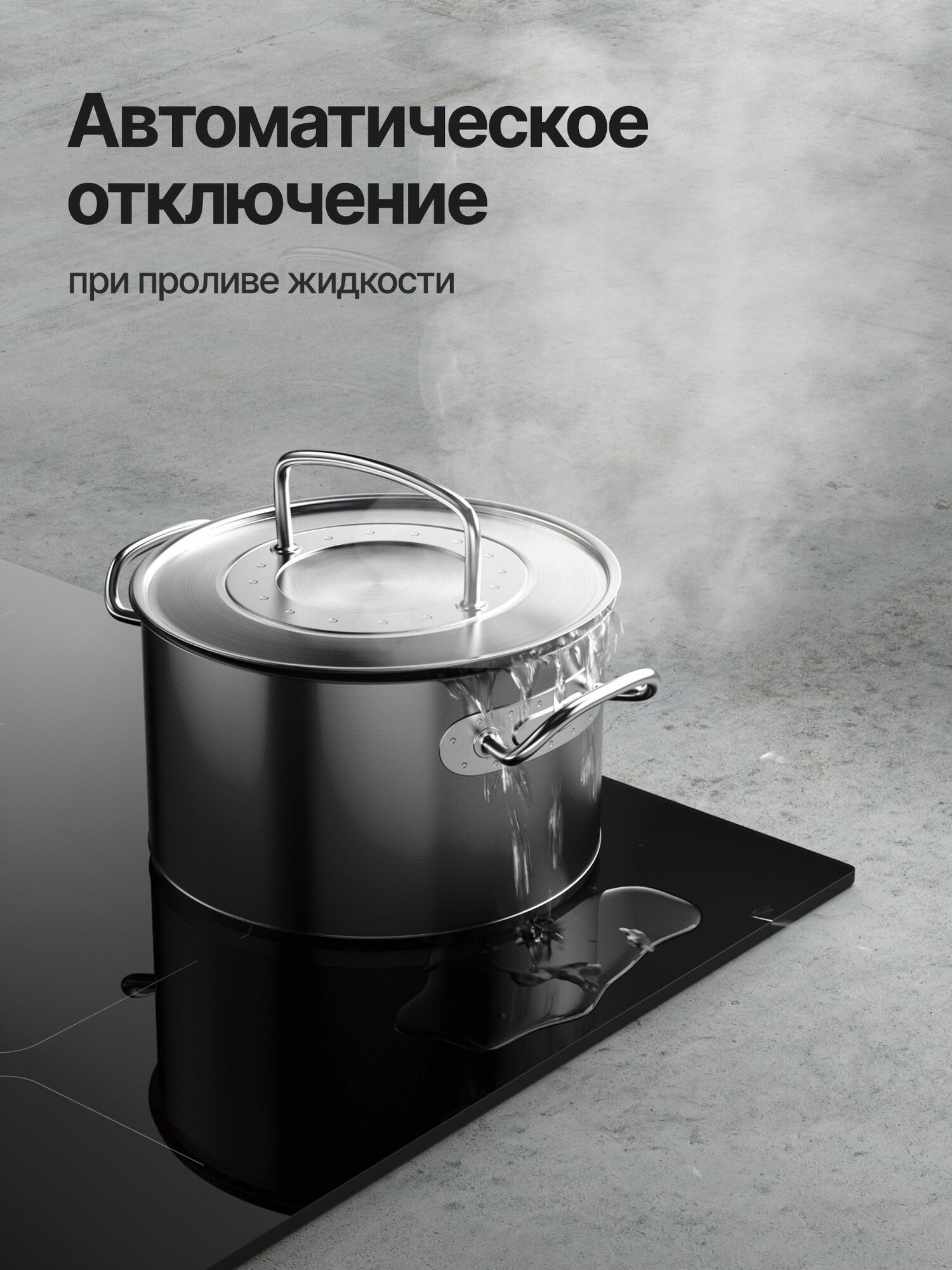импульсный индукционный нагрев, Защита от детей, автоматическое отключение, блокировка от детей, индикаторы остаточного тепла