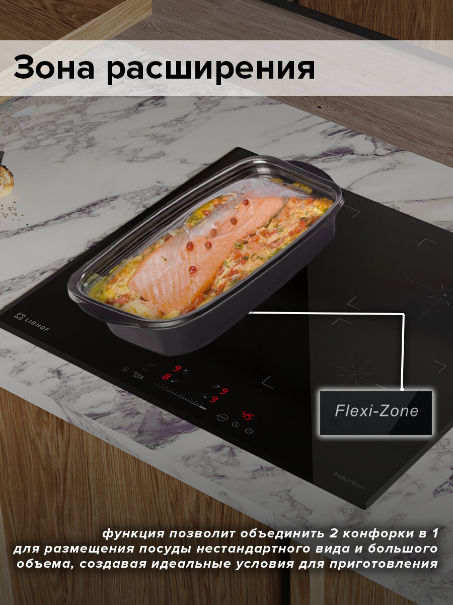распознавание наличия посуды, распознавание размера посуды, таймер, функция Booster, функция Flex Zone, Boost, Flexy-zone, Stop and go