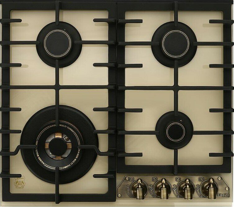 Газовая варочная панель Kaiser KCG 6335 ElfEm Turbo - это элегантная модель газовых приборов из линейки Empire, покрытая стеклом цвета слоновой кости. Сочетание решеток из светлого стекла и черного чугуна, коричневых конфорок с крышками, украшенными графикой, выглядит элегантно и современно. Эффективная турбо-горелка с тройным пламенем с чугунным адаптером для кастрюль WOK.