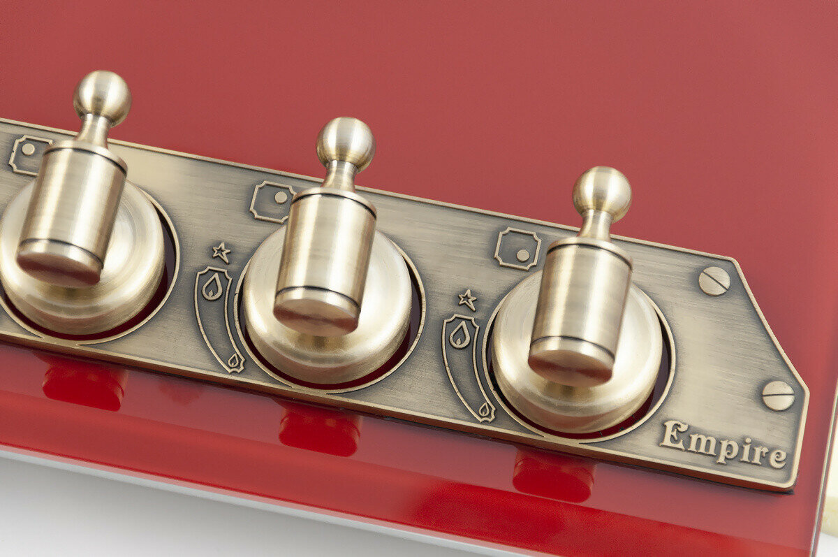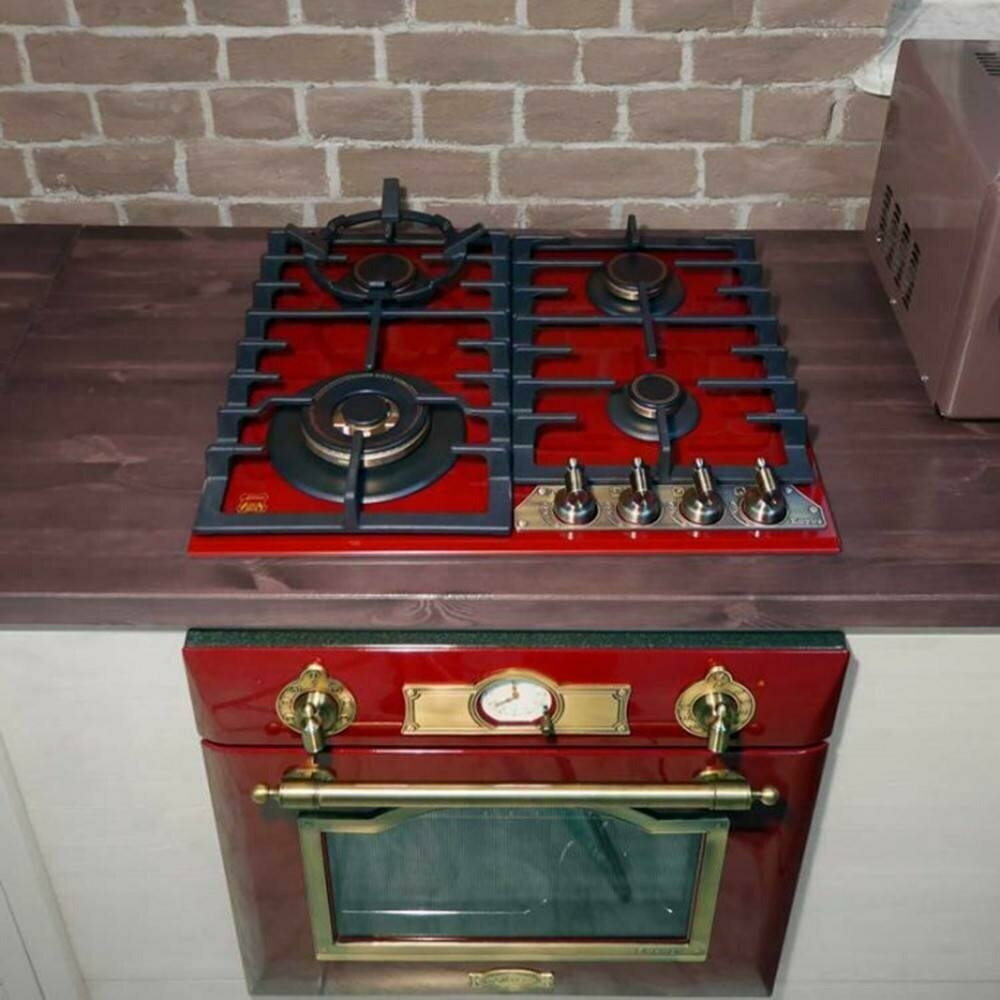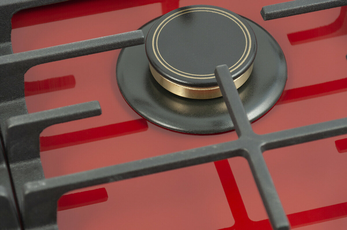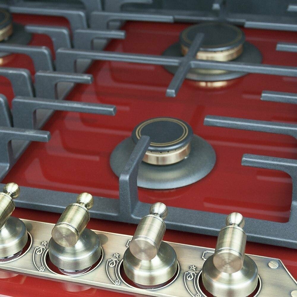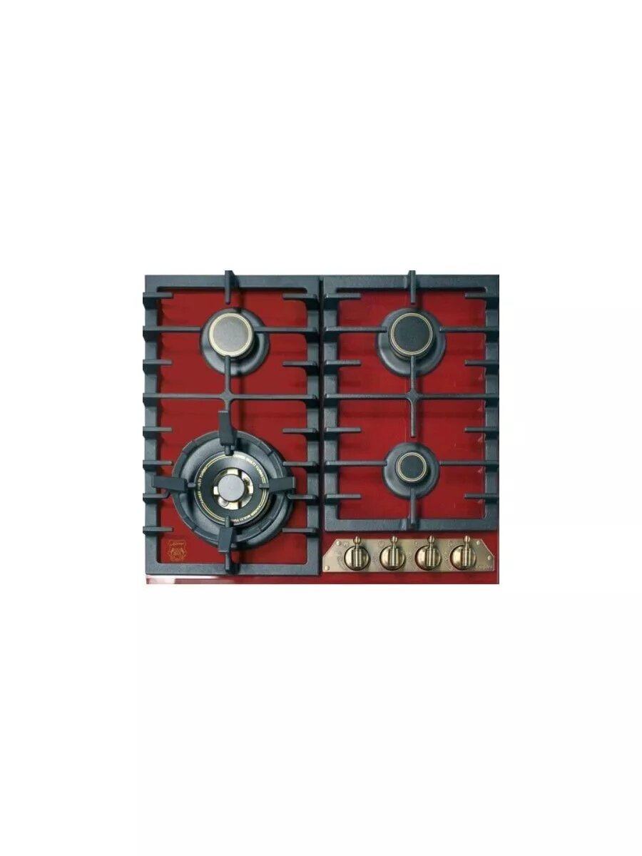 Газовая варочная панель Kaiser KCG 6335 RotEm Turbo из серии газ на стекле. Четыре конфорки с чугунными крышками украшены графикой. Одна из горелок - трехрядная турбоконфорка мощностью 3,8 кВт, одна экономичная и две стандартные. Сбоку - управления с четырьмя ручками «под бронзу».