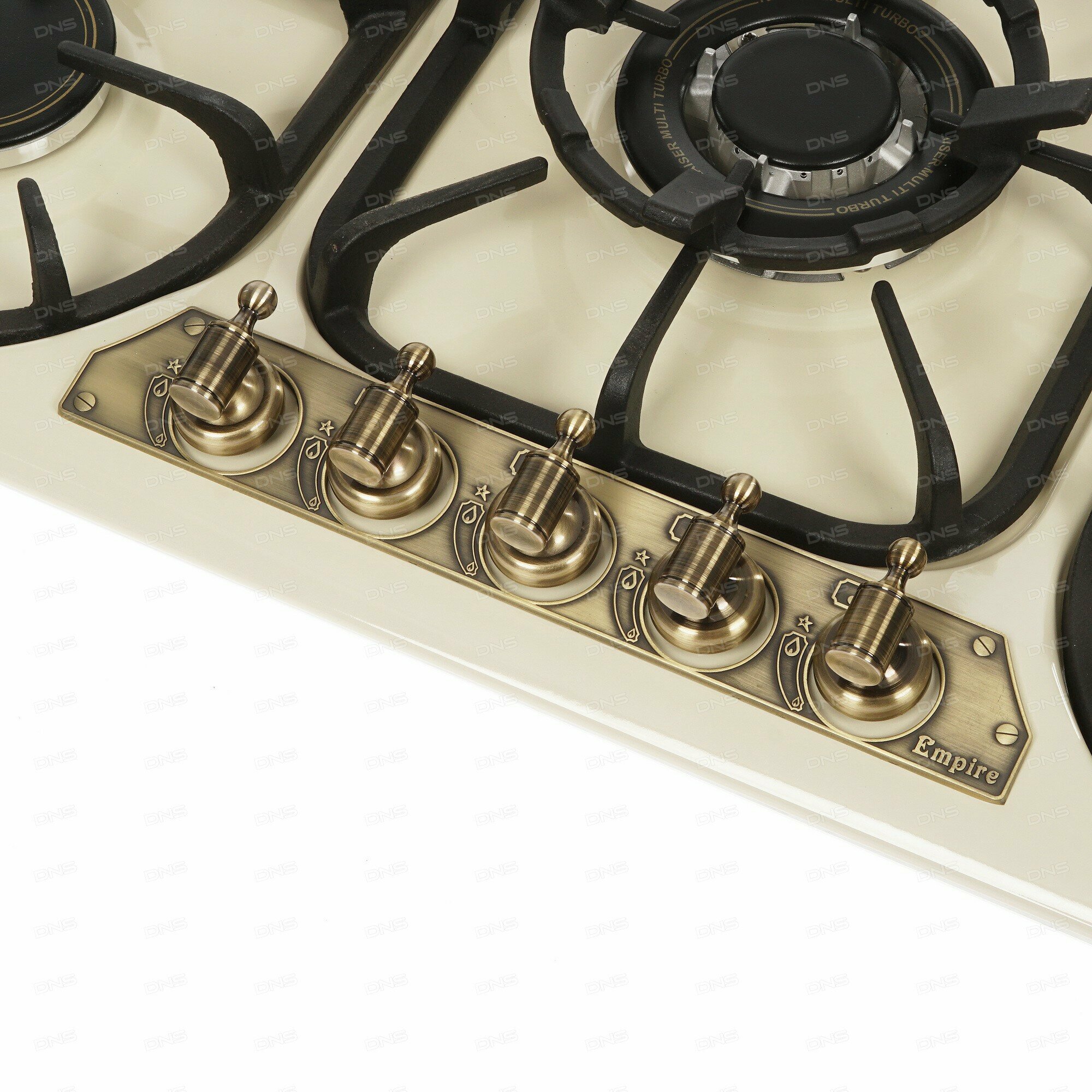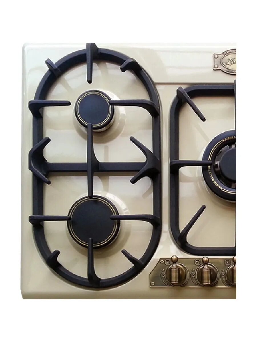 Газовая варочная панель Kaiser KG 9325 ElfEm Turbo - это элегантная пятиконфорочная модель линейки Empire, выполненная в цвете слоновой кости. В центре тройная турбо-горелка с чугунным адаптером WOK.