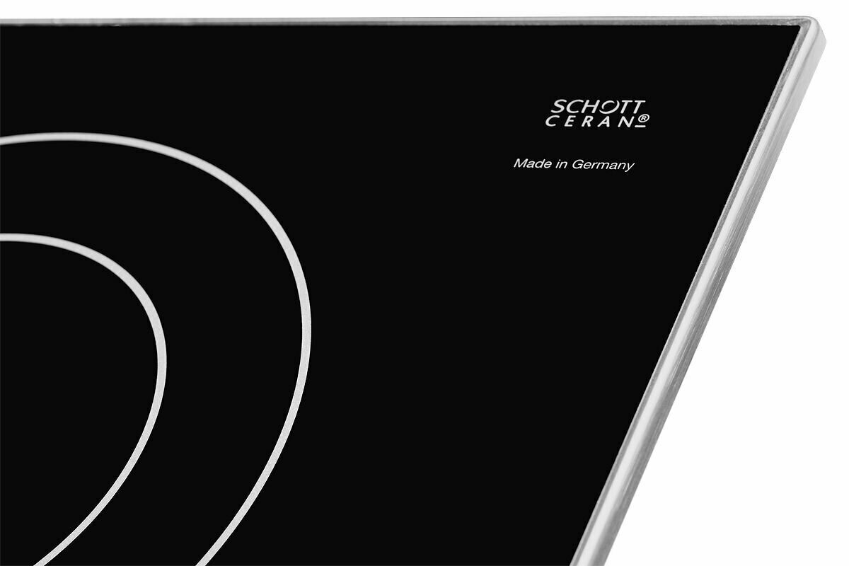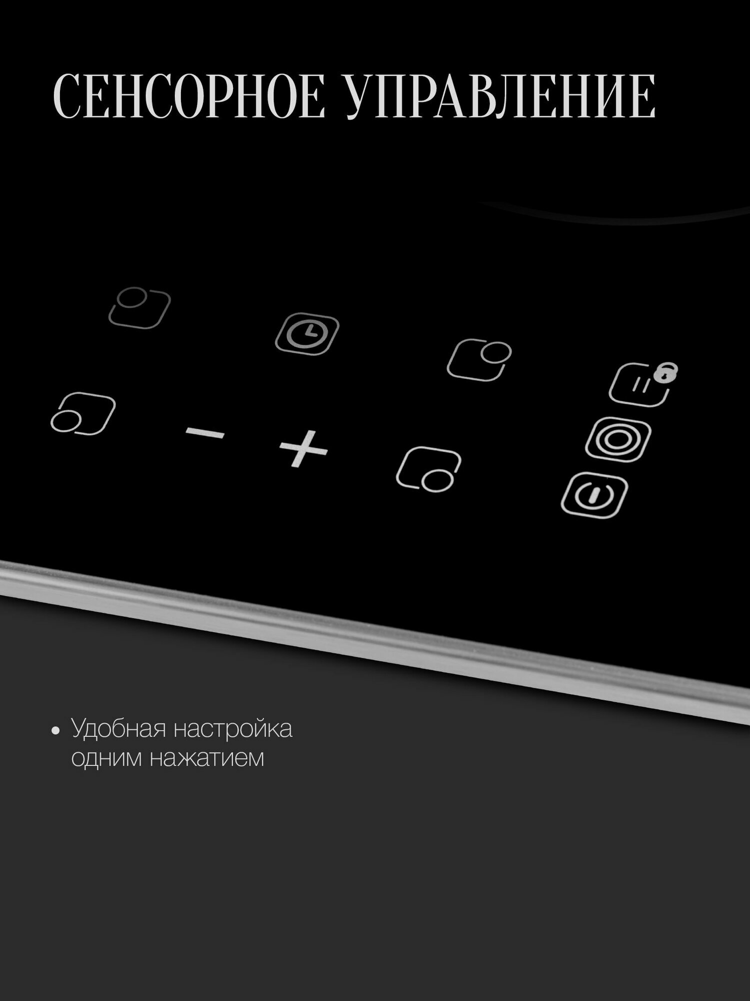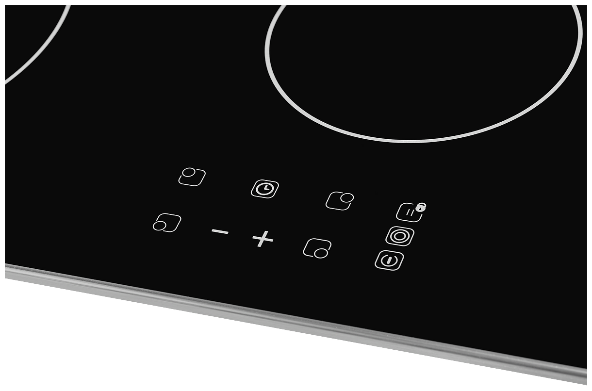 защитное отключение конфорок, индикатор остаточного тепла, кнопка блокировки панели