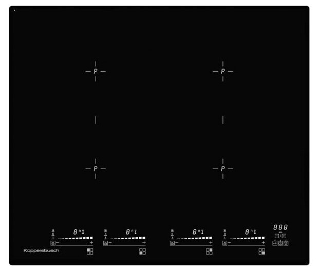 автоматика закипания, кратковременная пауза, поддержание тепла, распознавание наличия посуды, распознавание размера посуды, таймер, Booster, расширение зоны нагрева конфорок