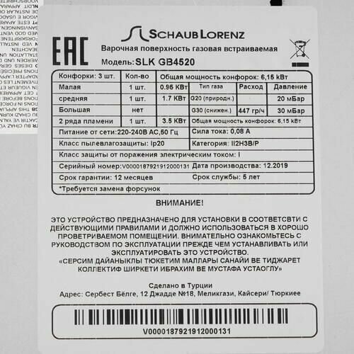 Газовая варочная панель Schaub Lorenz SLK GB4520