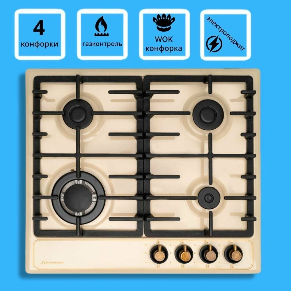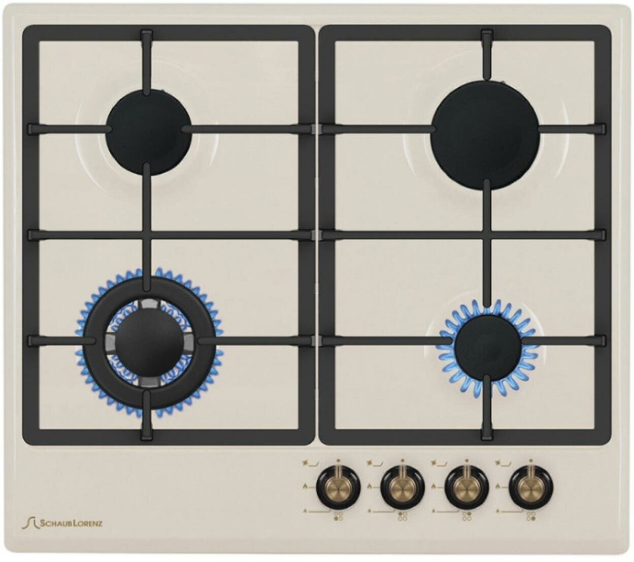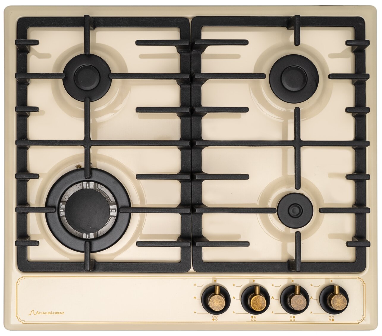Четырехконфорочная газовая плита Schaub Lorenz GB6520 - хороший выбор, если вам нужно приготовить еду для большой семьи. Это простая в использовании и безопасная модель. Бежевая поверхность и бронзовые переключатели делают его особенно элегантным.