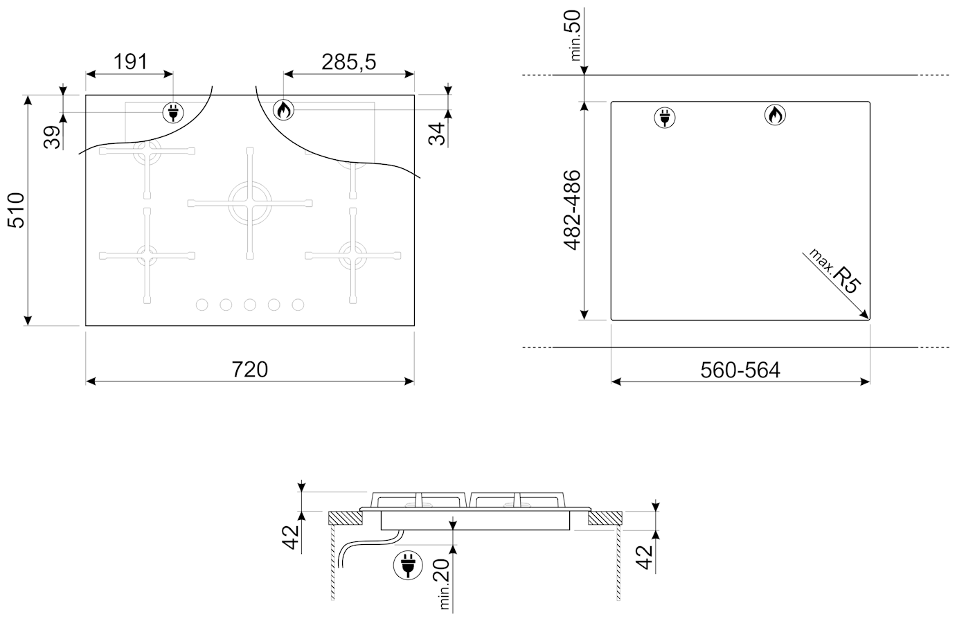 Газовая варочная панель Smeg PV175N2