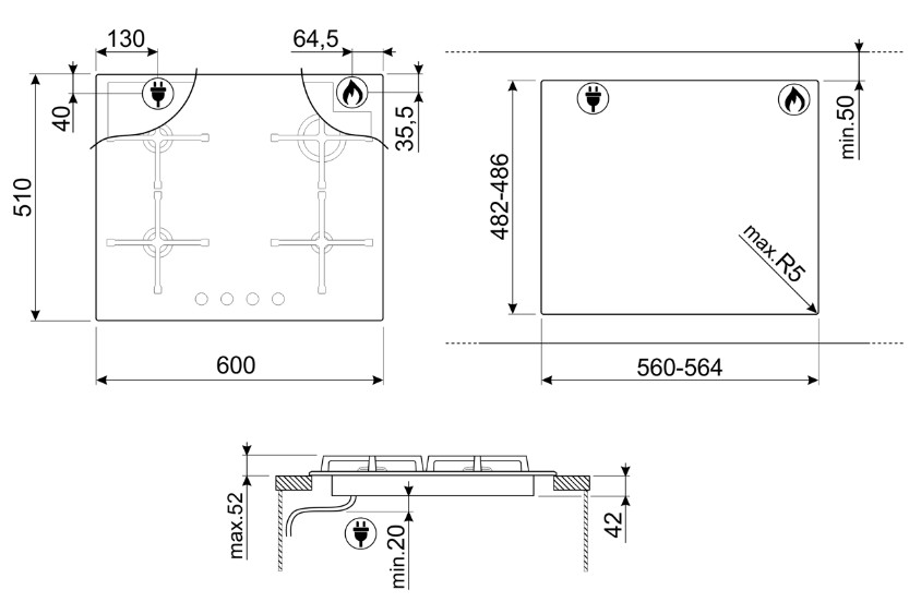 Ультранизкий профиль Ультранизкий профиль Ультранизкий профиль вовстраиваемых варочных панелях подразумевает установку устройства ненамного выше уровня столешницы. Этот тип встраивания представляет собой нечто среднее между накладным встраиванием ирасположением заподлицо. Края варочной панели вэтом случае по-прежнему опираются окрая столешницы, носама поверхность практически невозвышается над ней. Варочные поверхности сультранизким профилем— инновация, которую предлагает известная итальянская компания Smeg. Она выпускает подобные модели изколлекций Coloniale, Dolce Stil Novo, Victoria иClassica: все они могут встраиваться также вровень состолешницей. Это устройства сгазовым ииндукционным нагревом, споверхностью изнержавеющей стали, стеклокерамики, эмали. Так, вгазовых варочных поверхностях сультранизким профилем расстояние отстолешницы доверхнего края поворотных переключателей составляет всего 4см, авысота бортика уних составляет 3мм. Эти панели оснащаются также ультранизкими газовыми конфорками Blade, спомощью которых поддерживается непрерывный круг пламени, направленного вертикально вверх, что гарантирует лучший КПД, меньший расход газа изначительное сокращение времени приготовления.