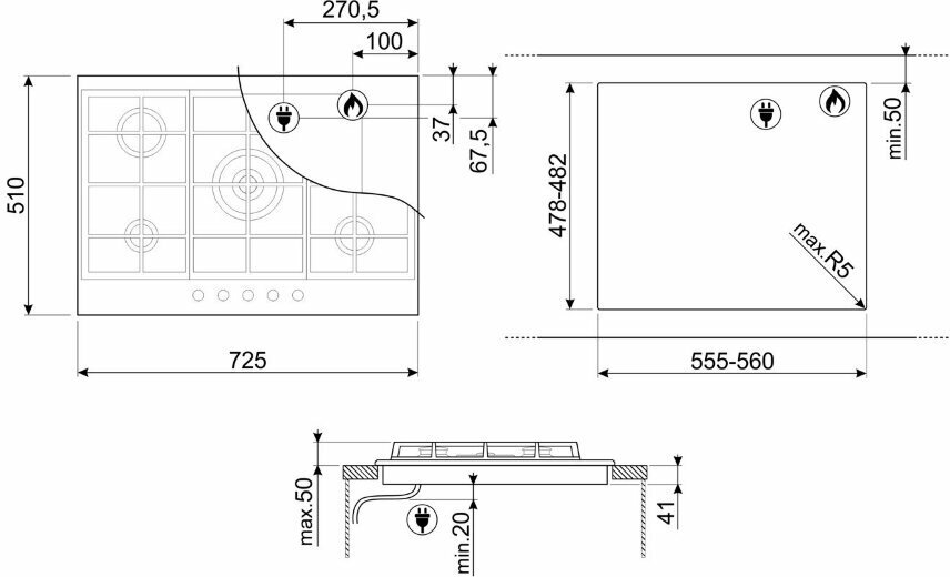 Газовая варочная панель Smeg PX375