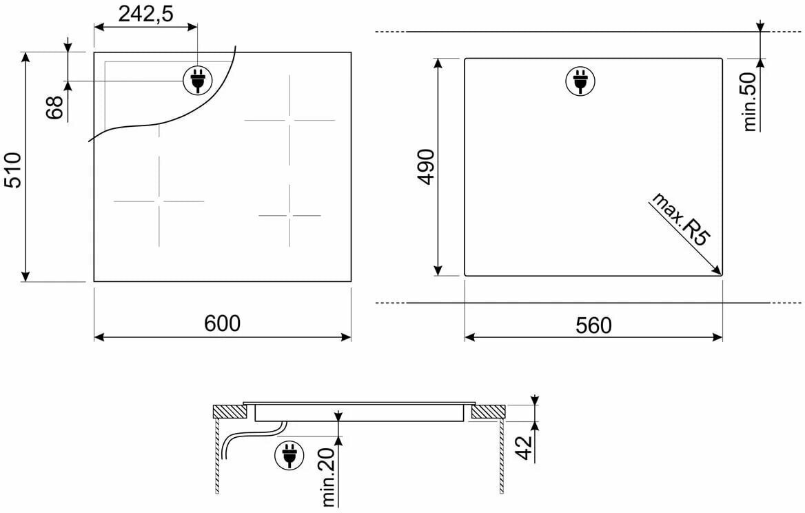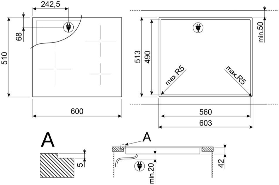 Установка вровень со столешницей; Электронное управление; Отключение при проливе жидкости; Блокировка от детей; Индикация выбранной мощности