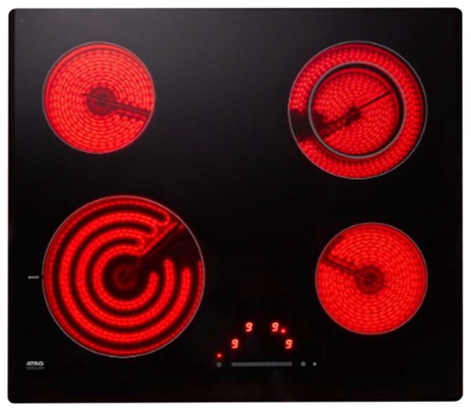 защитное отключение конфорок, индикатор остаточного тепла, кнопка блокировки панели