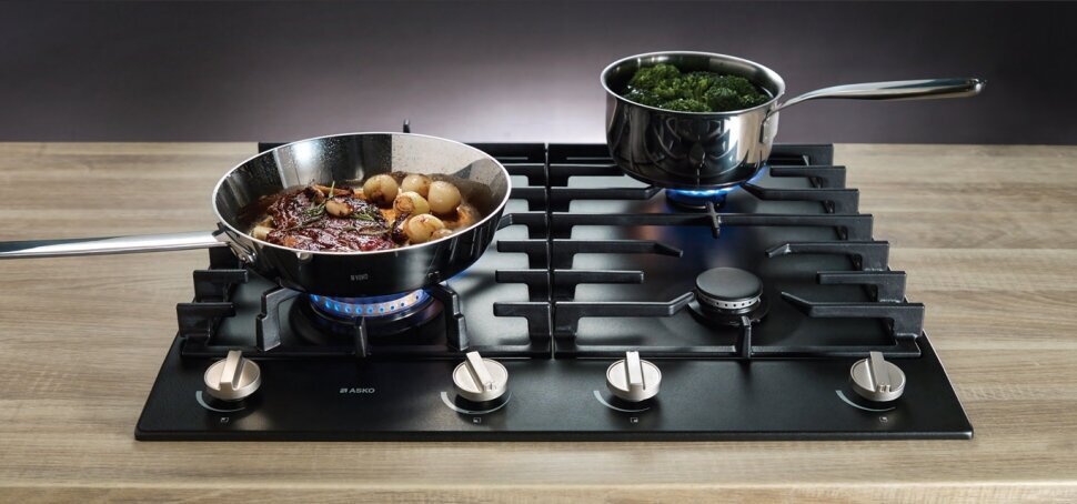 Asko HG1666AB имеет четыре конфорки. Super Vario Wok – самая мощная (4,2 кВт). На этой вок-конфорке можно с лёгкостью и удовольствием готовить блюда колоритной азиатской кухни. Три остальных конфорки – гибридные А+.