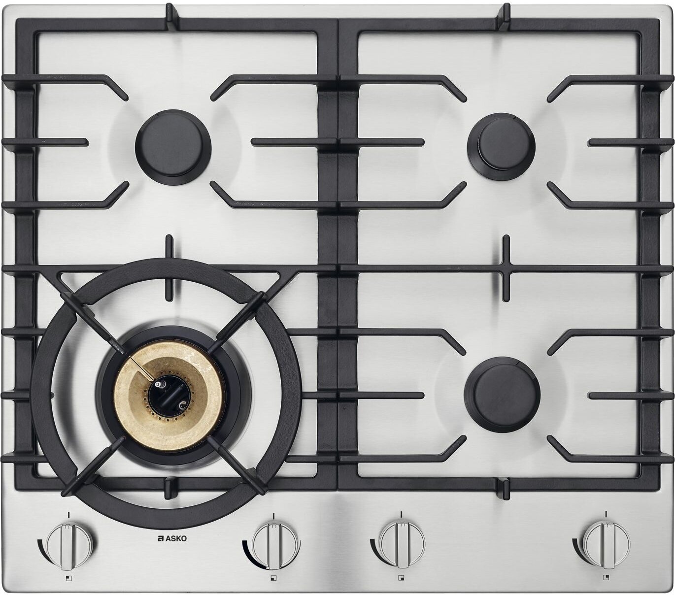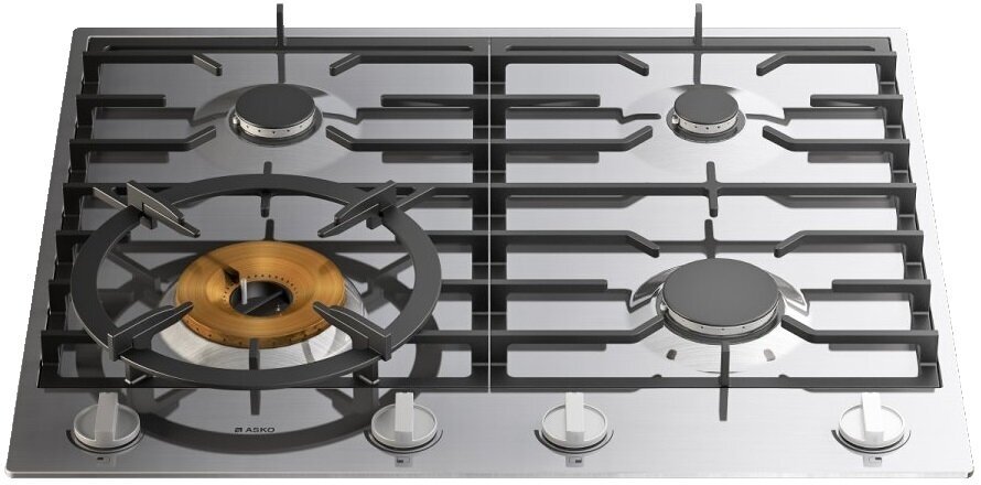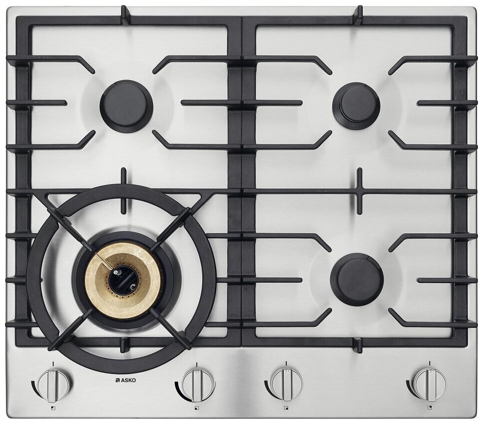Asko HG1666SB оснащена четырьмя конфорками: двумя с мощностью 2 кВт, одной – 1 кВт и ещё одной – 4,2 кВт. Самая крупная и мощная конфорка – это Super Vario Wok, на которой можно готовить различные блюда азиатской кухни. Она дополнена специальной круглой решёткой. Остальные конфорки являются гибридными А+. Их особая конфигурация гарантирует равномерный нагрев посуды, полное сгорание газа, а также стойкое пламя. Это обеспечивает быстрое, экологичное и комфортное приготовление пищи. Посуду возможно размещать на всех конфорках одновременно благодаря их эргономичному расположению.