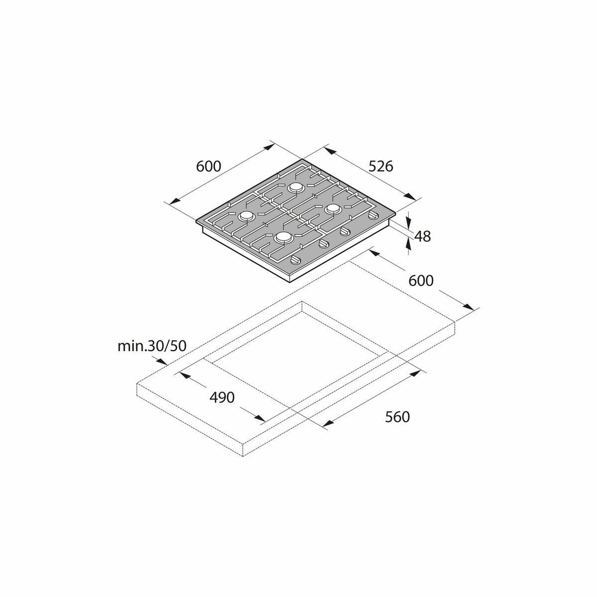 Включать конфорки максимально просто, а сила пламени регулируется механически – с помощью поворотных ручек. Принцип работы устройства стандартный, но при этом модель является встраиваемой: её можно встроить в столешницу для комфортного доступа к рабочей поверхности и панели управления.