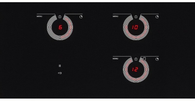 защитное отключение конфорок, индикатор остаточного тепла, кнопка блокировки панели