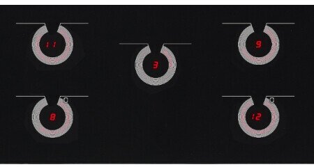 защитное отключение конфорок, индикатор остаточного тепла, кнопка блокировки панели, Одновременное отключение всех зон, Отключение при перегреве