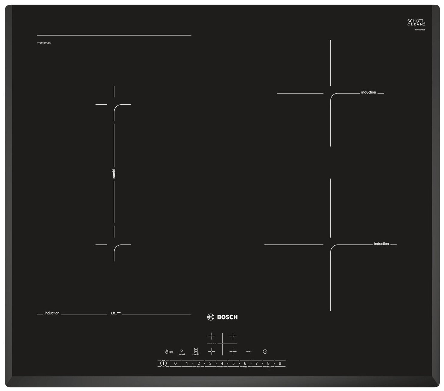 автоматика закипания, кратковременная пауза, поддержание тепла, распознавание наличия посуды, распознавание размера посуды, таймер, функция Booster, функция Flex Zone, функция ReStart, Быстрый нагрев, Индукционный мост, Расширение зоны нагрева