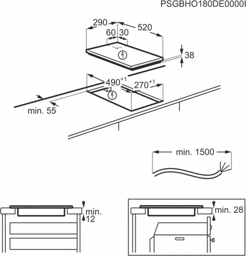 защитное отключение конфорок, индикатор остаточного тепла, Автоотключение