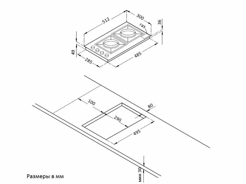 тип панели: газовая; установка: независимая; дизайн домино: есть; габариты (ШхГ): 30 x 50 см; размеры для встраивания (ШхГ): 29 x 49 см; всего конфорок: 2; материал панели: нержавеющая сталь; конфорок «Тройная корона»: 1; электроподжиг: есть; расположение панели: спереди; переключатели: поворотные; газ-контроль конфорок: есть; чугунные решетки: да