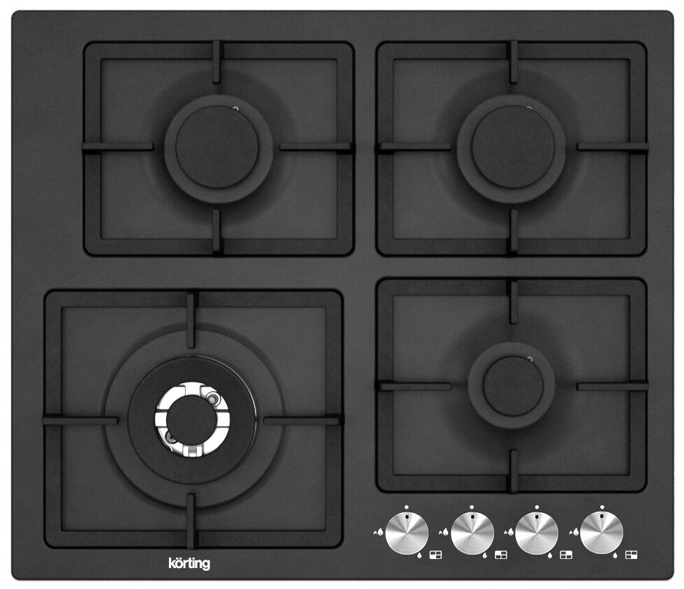 Газовая варочная поверхность Korting HG 697 CTN - выполнен в черном корпусе со стальной эмалированной панелью. Это покрытие обеспечивает более легкую и удобную очистку, не требующую времени. Конструкция поверхности предполагает наличие 4-х конфорок, среди которых выделяется тройная горелка WOK повышенной мощности.
