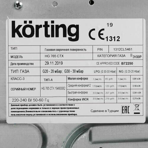 Скачать документы для Газовая варочная панель Korting HG 765 CTX Crystal